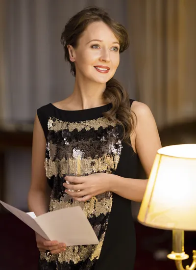 «2014 год — год синей Лошади, поэтому мой наряд будет очень кстати. Особое внимание при выборе вечернего платья я уделяю материалу: атлас и парча выглядят роскошно!»