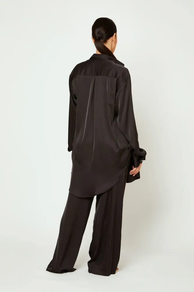 Если вы любит минимализм, но любите и роскошь — этот вариант домашней одежды для вас. Российские дизайнеры из бренда PETRA создали идеальный домашний комплект: удлиненная оверсайз рубашка, свободные пижамные шорты, либо брюки невероятной ширины на комфортной резинке. Правда, спать в такой пижаме будет не очень комфортно: она выполнена из полиэстера. Зато принимать гостей не стыдно!