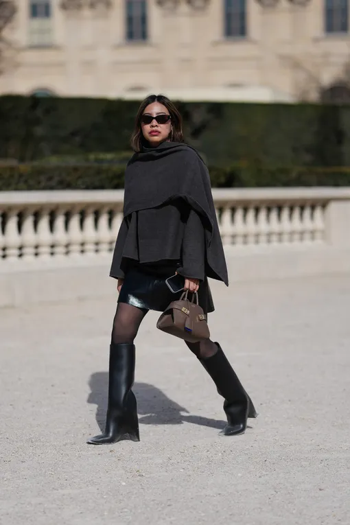 Если душа просит более интересных решений, советуем обратить внимание на глубокие темно-серые, графитовые или теплые коричневые оттенки. Графит особенно выигрышно смотрится с пастельными пальто и светлыми ботильонами, а шоколадные оттенки идеально гармонируют с карамельными плащами и замшевой обувью. Эти цвета позволяют добавить в образ тепла и уюта, сохранив при этом сдержанность и изысканность.