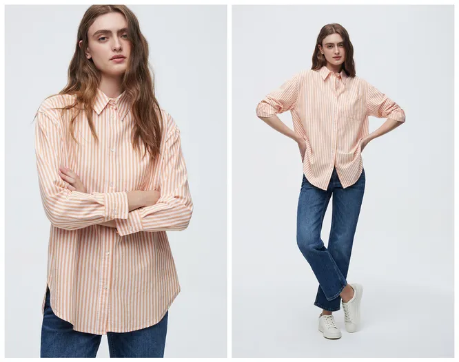 Это именно то, о чём мы говорили! Идеальная комбинаторность персиковых оттенков как в сочетании с классическим белым, так и с более сложными синими тонами. Модель выполнена полностью из хлопка. Сейчас её можно носить вместе с джемперами и кардиганами, а весной она станет самостоятельным предметом повседневного гардероба. И не упустите очень приятную скидку!