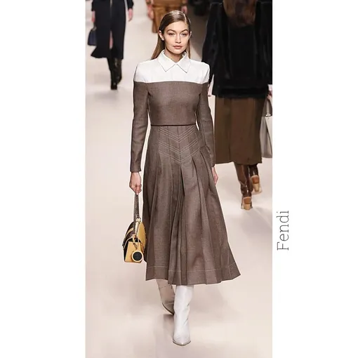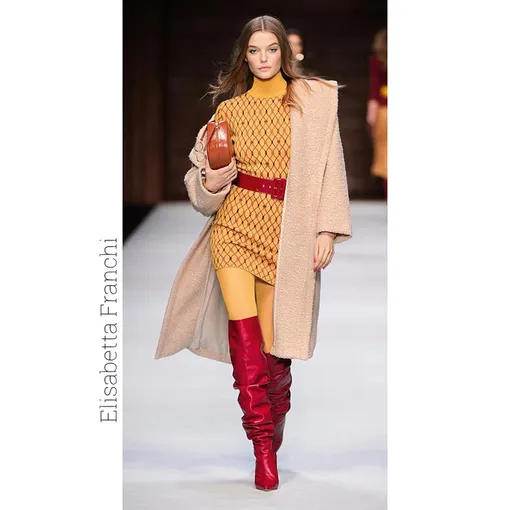 к ним вещи, которые закроют сапоги практически до колен. Например, плиссированную юбку, платье в стиле 70-х, объемное платье-свитер.
