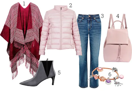 1. Пончо, Faberlic; 2. Куртка, Baon; 3. Джинсы, Marks & Spencer; 4. Рюкзак,