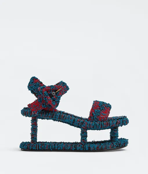 Мы только привыкли к «утиным» носам обуви от Bottega Veneta и их резиновым сапогам, как они представили летнюю коллекцию. Как вам сандали на воздушной танкетке, например? Они на 90% сделаны из вискозы, напоминающей твид, а вместо танкетки — воздух. Сандали держатся только на каркасе.