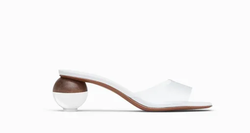 Лондонский бренд женской обуви Neous основала стилист Ванисса Антониус. В своих коллекциях она делает ставку на современную минималистичную эстетику, черпая идеи в архитектурном наследии XX века, модерне и современном искусстве. Изначально марку прославили мюли Opus со сферическим каблуком из оргстекла — так модель вошла в постоянную коллекцию бренда. Летом 2021 бренд предлагает переключиться на дерево и кожу. Наш фаворит — белые сабо на сферическом каблуке, который сделан из дерева и пластика.