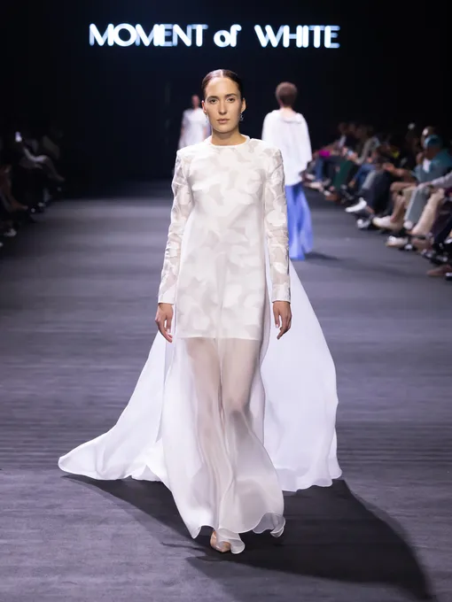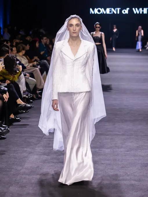 Палитра свадебных нарядов тоже становится теплее и сложнее. «Белый по-прежнему уместен, но сейчас в тренде кремовые, бежевые, перламутрово-серые тона. Они мягче и гармоничнее выглядят в "холодных" декорациях. А если хочется контраста — выбирайте глубокие акценты: бордо, графит, сапфир. Главное — поддержать оттенок в деталях декора и образа жениха».