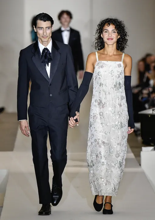 «Жених в 2025–2026 году может позволить себе больше, чем классический черный костюм», — отмечает эксперт. В моде текстурные ткани: бархат, твид, шерсть. Бархатные смокинги глубоких оттенков — темно-синие, бордовые — выглядят благородно и придают образу торжественность.