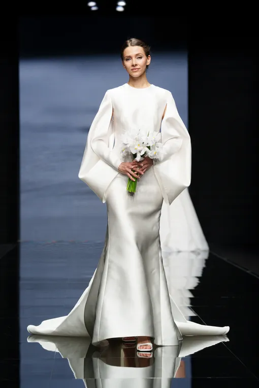 В моде сезона 2025–2026 — плотные, выразительные фактуры и многослойность. «Стоит забыть о шифоне и органзе, какими бы воздушными они ни были, — советует Ольга. — Осенне-зимняя невеста выбирает сатин, бархат, текстурированный креп. Юбка с подкладом не только выглядит роскошно, но и спасает от холода. Плотные ткани позволяют носить колготки, не теряя элегантности, и не бояться осадков — юбка сохранит форму и красоту даже на ветру или снегу».