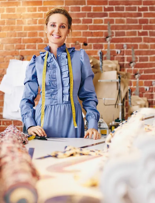 У меня всегда был свой бизнес — журнал, рекламное агенство полного цикла. Но 17 лет назад (на спор!) я решила основать ателье. Чтобы разобраться в новом для себя деле, поехала в Италию, взяла «желтые страницы» и стала по ним объезжать текстильные компании. В Россию я вернулась с контрактом на поставку роскошных тканей, которые отличались ото всех тех, что продавались в магазинах в 1999 году.