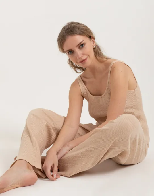 Неплохой и очень стильный вариант в модном оттенке «нюд». Потом в таком можно будет и в люди выйти: например, топ хорошо будет смотреться с синими джинсами с высокой талией. Главное, что-то накинуть сверху – издалека будет казаться, что вы обнажены.