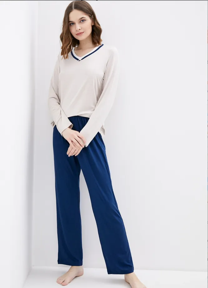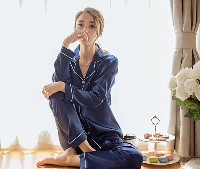 Классический вариант – брюки и рубашка. Насыщенный цвет и шелковистая ткань – приятно к телу и выглядит всегда дорого. Синий цвет способствует здоровому сну.