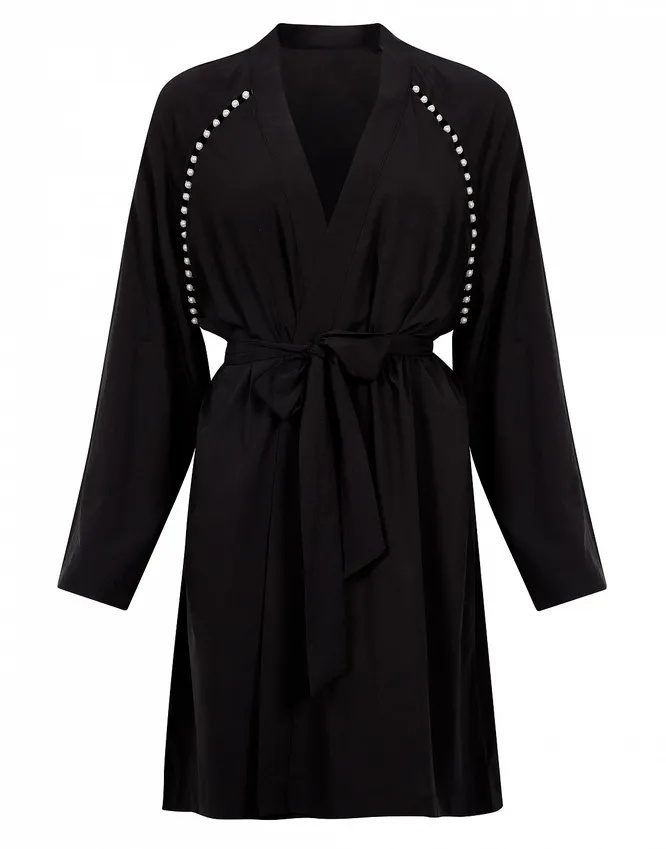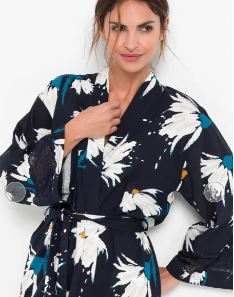 Уже давно в моде свободные силуэты халатов с приспущенной линией плеч с слегка расклешенными рукавами. Вместо застежек и пуговиц все чаще используют глубокий запах и пояс, который позволяет чувствовать себя комфортно и одновременно подчеркнуть талию.
