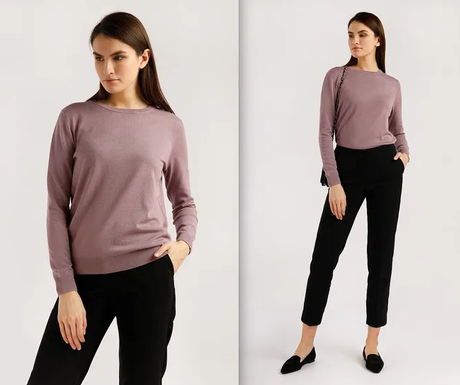 Классически джемпер вязанный или из трикотажа – еще одна палочка-выручалочка современной женщины. Особенно выигрышно он смотрится в сочетании с шелковыми юбками. Более спокойный образ – джинсы и брюки. На самом деле базовый джемпер – это светлые, преимущественно пастельных цветов модели не очень объемного кроя. В этом случае его можно носить как отдельно, так и вместе с рубашкой, жакетом или водолазкой. Он не должен брать на себя много внимания, а быть хорошим дополнением образу.