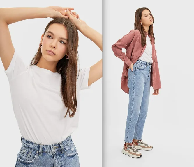 Самая настоящая базовая вещь. Не знаете, что надеть под яркий жакет или кардиган? Конечно белую футболку! В кардеробе таких должно быть несколько: свободная и приталенная, с круглым вырезом и V-образным. Тем более, что найти их можно всегда про приемлемой цене. Черные футболки, футболки с надписями или даже футболки-поло не так универсальны и к ним стоит внимательно подбирать компаньонов. Но помните: их нужно как следует отбеливать!