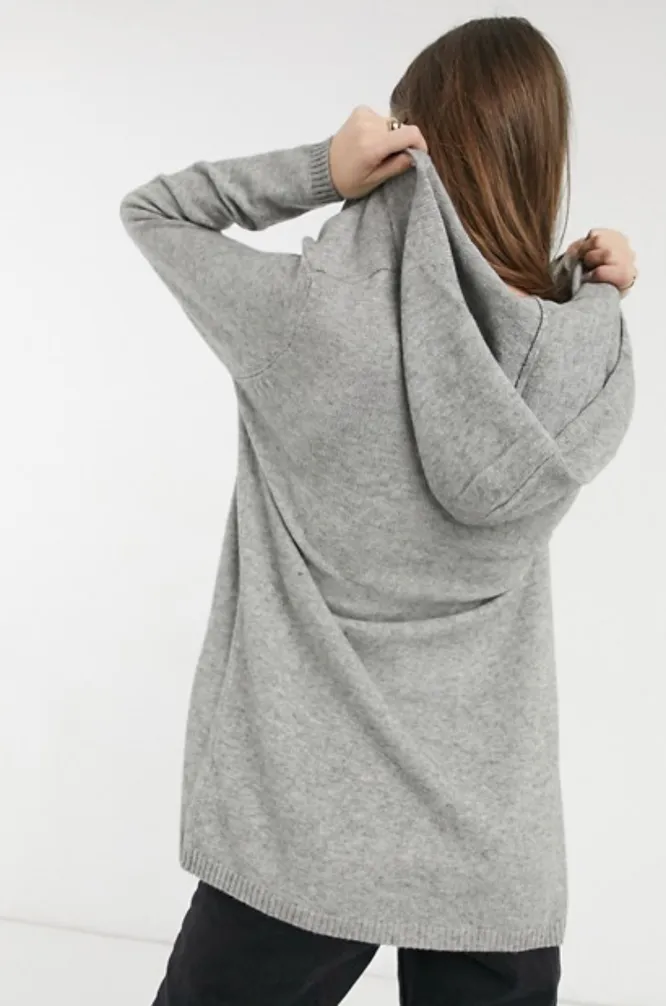 Длинная вязаная кофта — то, что спасет вас от любых морозов и ветра. Надевайте ее поверх любой водолазки или футболки, носите с облегающими платьями или брюками в тон. В тренде удлиненные кардиганы без пуговиц и даже без пояса — небрежность рулит.