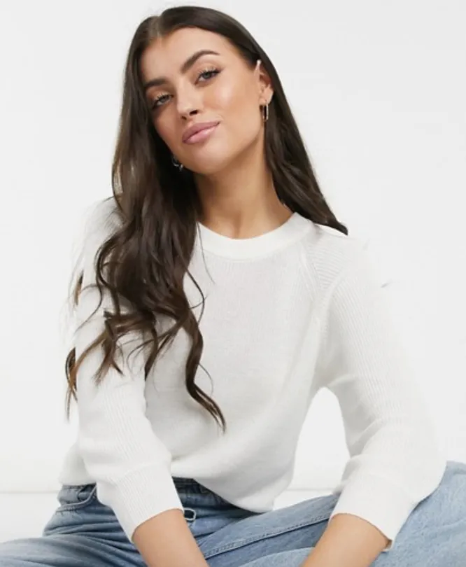 Даже самый обычный свитер может смотреться интересно, если в нем есть особый акцент. Чтобы разнообразить повседневный образ, обратите внимание на вязаную кофту с рукавом реглан. Такой свитер не смотрится слишком просто как худи и выглядит вполне романтично с длинной юбкой.