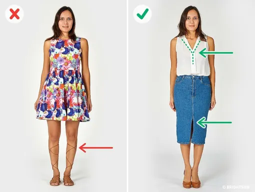 Сандалии со шнуровкой, кстати, оптически укорачивают ноги.