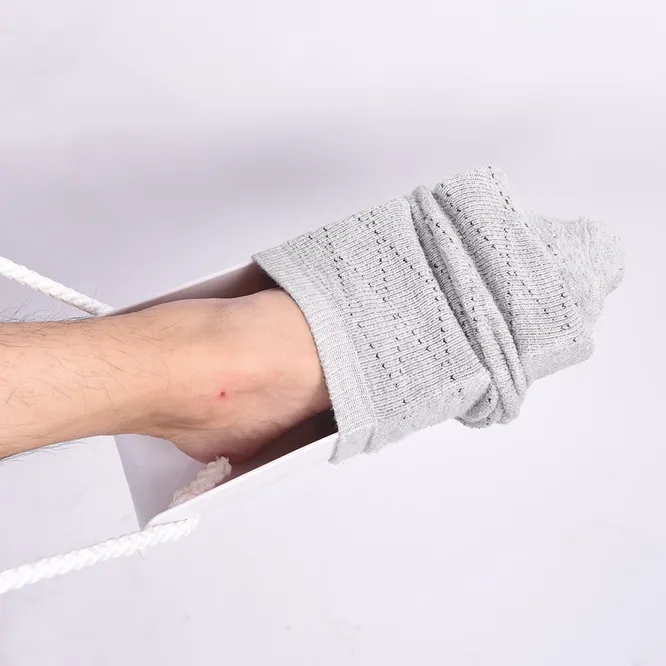 Те, у кого артрит, не понаслышке знают, как трудно наклониться, чтобы надеть носки. В Китае придумали приспособление, помогающее делать это не наклоняясь. Вам просто нужно надеть носок на специальный держатель, спустить его к ногам и потянуть за веревки по бокам. Силиконовая накладка прибора дотянет носок вверх и выйдет из него.