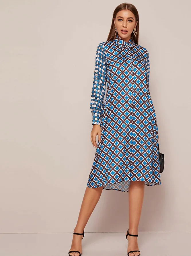 Платье-рубашка – универсальный вариант. За счет прямого кроя и пестрого принта оно идет любому типу фигуры. А еще оно многофункционально: если его расстегнуть до талии снизу, то можно носить как длинную рубашку с джинсами клеш или широкими брюками-палаццо.