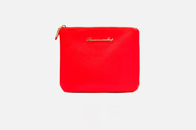 Тонкую красную косметичку придумала визажист Ольга Романова, известная по работе со звездами. В эту косметичку поместится только самое необходимое: тушь, пудра, помада, кисть для бровей. Зато ее удобно носить с собой каждый день. И можно использовать как клатч на вечер.
