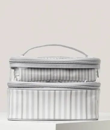 Это идеальная Большая косметичка. Помимо того, что она разделена на два отделения, один из которых прозрачный, в комплекте также идут две маленькие косметички для кисточек и карандашей.