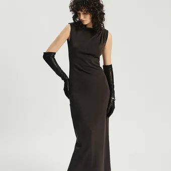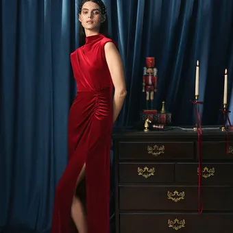 Благородный сатин, креп или вискоза — ткани, которые красиво держат форму и создают утонченный силуэт.