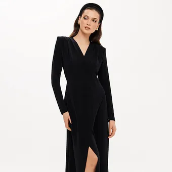 Черное, сапфировое или в пайетку — универсальный вариант, который никогда не подводит. Дополните его бархатными туфлями или лаконичными лодочками.