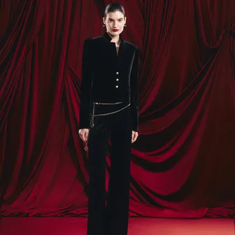 Смокинг или женственный костюм в благородном цвете — отличный выбор для современной театральной моды. Добавьте шелковый топ или боди с деликатным блеском — и образ заиграет.