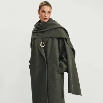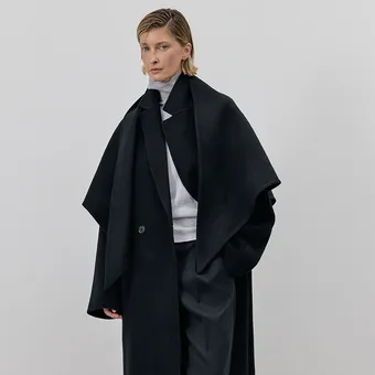 Если вам ближе минимализм, шерстяное пальто — безошибочный выбор. Оно подойдет к любому театральному образу — от вечернего платья до брючного костюма.