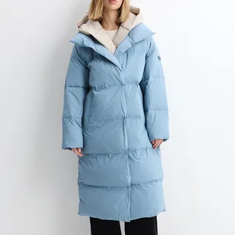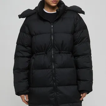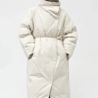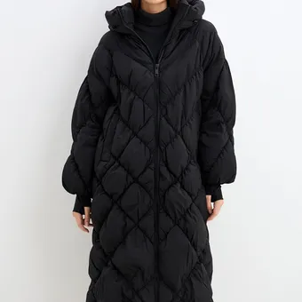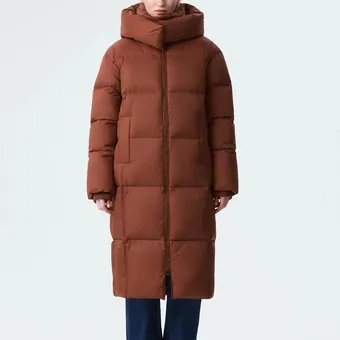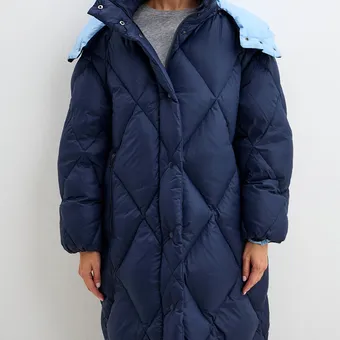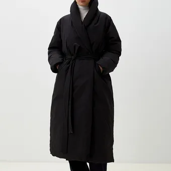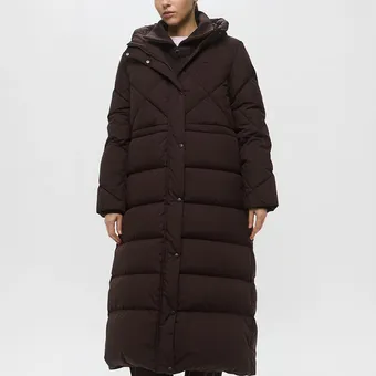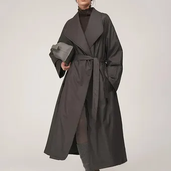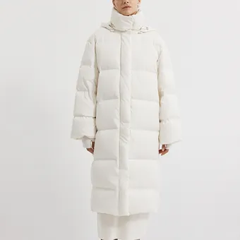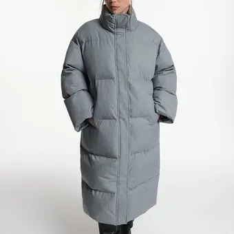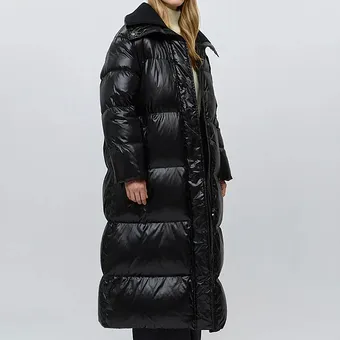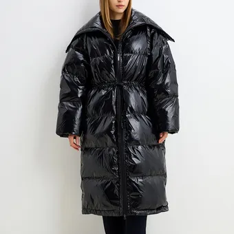 - Концепция «кокона». В мире, который требует от нас постоянной активности, возможность создать собственное уютное пространство — это новая роскошь. Длинный пуховик — ваш личный кокон от суровой зимней реальности.