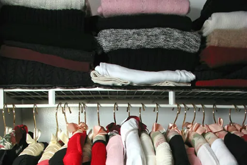 Вязанные вещи и трикотаж лучше всего хранить в сложенном состоянии — вешалки могут стать причиной их вытягивания и деформации.