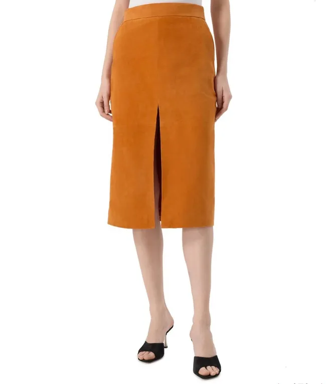 Замшевая юбка-карандаш морковного оттенка Iceberg
