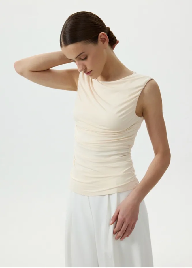 Нежнейшая вещь, которая способна создавать нужное романтичное настроение сразу после того, как вы ее наденете. Топ делает акценты на изгибах тела, но виртуозно прячет недостатки благодаря драпировке.