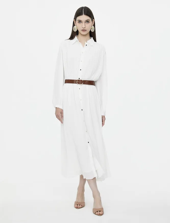 Еще не собрались на море? Не забудьте про платье-рубашку! Нашли стильную базовую модель как раз для отпуска в жарких краях. Белый цвет и дышащий, невесомый материал шифон не дадут вам страдать от жары, а закрытый силуэт — сгореть.