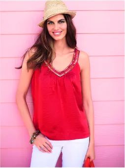 Основа летнего гардероба — отлично сидящие белые джинсы. Носите их и днем, и вечером, дополнив цветным, расшитым пайетками топом.