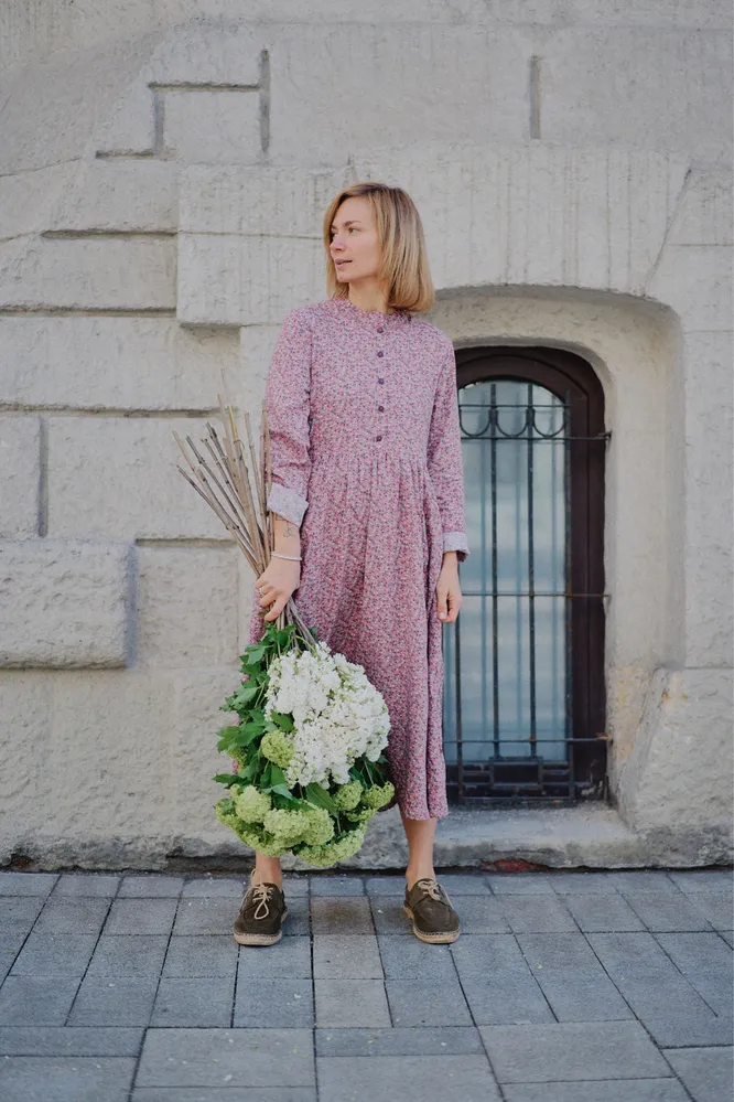 Но летний отдых — это не только шикарные приморские курорты. Это еще и прогретое солнцем крыльцо бабушкиной дачи, когда в старой вазе — букет из ромашек и Иван-Чая, а на столе — полное блюдце малины и крыжовника. И внучка еще крошка, которая едва дотягивается до стола, и вся жизнь впереди и полна невероятных возможностей. Вернуть частичку волшебного деревенского лета поможет платье плюс сайз (50—52) от маленького российского бренда Zoesan Sarafan. Простое закрытое платье на пуговках выполнено из нежного штапеля в мелкую розовую розочку.