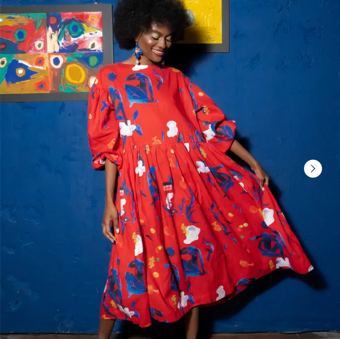 Если хочется не прохлады, а наоборот, жары — обратите внимание на платье «Матисс» с авторским принтом. Оверсайз фасон, который уже стал абсолютным бестселлером, и в котором, благодаря просторному покрою, не жарко летом и красный цвет, который идет абсолютно всем. Треугольный вырез на спине — необычный откровенный акцент. При желании подчеркнуть фигуру, в комплекте есть пояс. Рукава на резинке позволяют регулировать их высоту.