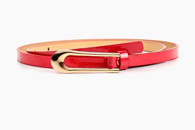 Тонкий ремень поможет вам приталить мешковатое платье, сделав образ более женственным. Он сделан из натуральной кожи, поэтому прослужит вам ни один день. А еще он поможет сделать образ более завершенным, если надеть его с красной сумочкой или туфлями.