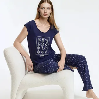 Эта пижама точно не останется пылиться в шкафу! Свободная футболка и брюки не стесняют движения. В такой пижаме можно спать, завтракать, смотреть вечерний сериал и даже сделать ее домашним костюмом на каждый день. 100% гипоаллергенный хлопок не раздражает кожу и позволяет ей дышать. Такой подарок — овеществленное пожелание сладкого сна и полноценного отдыха.