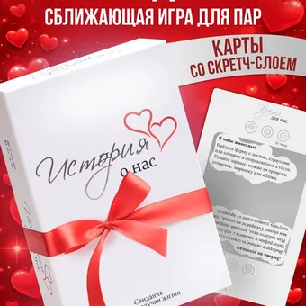 Настольная игра для пар, полная сюрпризов и романтики. Каждая из скретч-карт покрыта стирающимся слоем, под которым спрятана идея одного из 85 свиданий. Варианты самые разнообразные: от мини-приключения до тихого вечера вдвоем или активной прогулки. Каждая из встреч способствует сближению недавно образовавшейся пары или возрождению романтики в долгих отношениях.