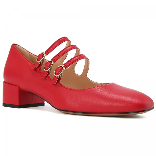 Эти красные туфли слегка напоминают эстетику Мэри Джейн. Обувью в таком стиле можно дополнить и яркий, праздничный аутфит и повседневный, поэтому вы сможете носить эту пару целый год, миксуя её с джинсами, классическими брюками и нежными платьями.