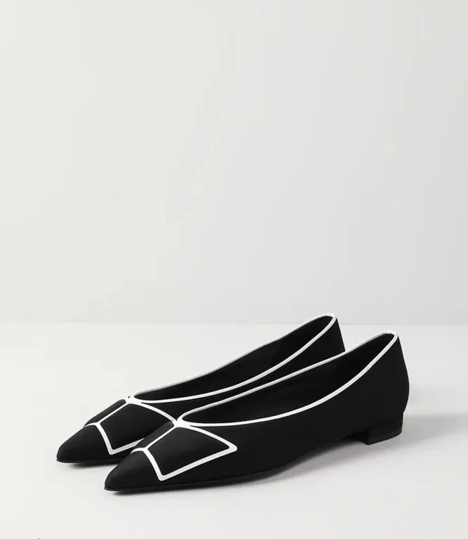 Акцентный край был на пике этим и прошлым летом. Мы видели такие майки и купальники, но туфли — это что-то новенькое! Чёрно-белые балетки с минималистичным бантом выглядят броско, но при этом женственно.