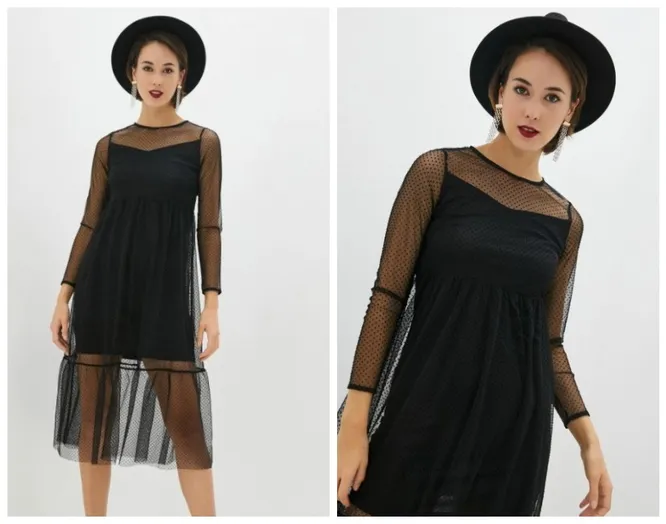 Zarina, Черное двуслойное платье с прозрачной сеткой, 2599 руб