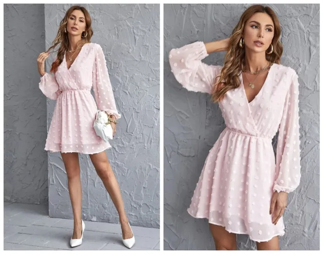 Shein, Нежно-розовое приталенное мини-платье с запахом, 1290 руб