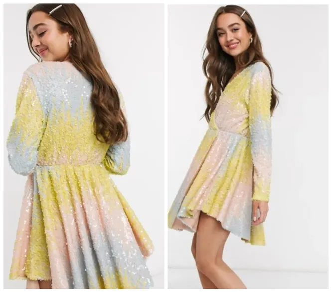 Collective The Label Petite, Мини-платье с запахом, пайетками и ассиметричным подолом с эффектом омбре, 5890 руб