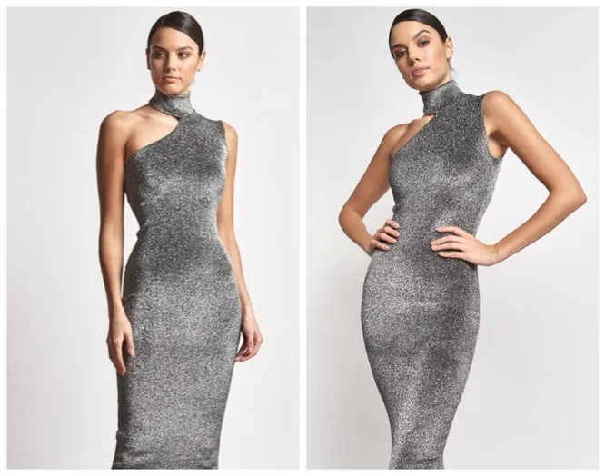 The Select Moscow, Облегающее платье на одно плечо металлического оттенка, 5900 руб
