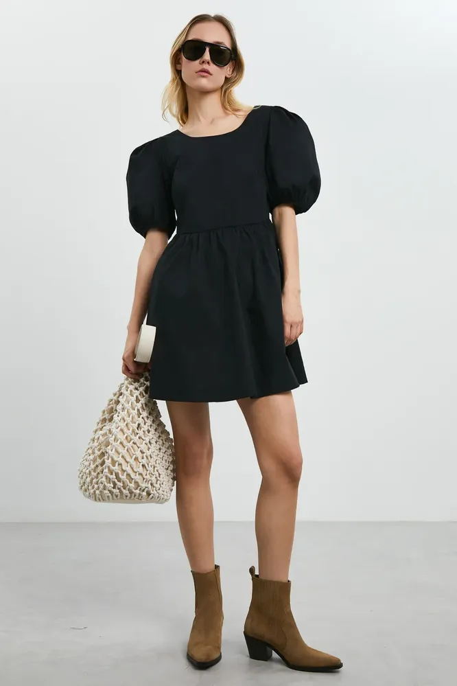 Женственный силуэт работает в тандеме с чёрным цветом. Чтобы усилить эффект, наденьте грубую обувь и массивные аксессуары. Вас точно назовут стильной особой, да и платье потом не будет весь год висеть в шкафу!