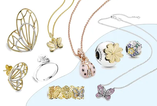 В весенней коллекции «Сад PANDORA» изделия выполнены в трех фирменных металлах бренда: PANDORA Rose, PANDORA Shine и серебре. Дизайнеры Франческо Терзо и Филиппо Фикарелли позаимствовали у природы символы преображения, счастья, надежды и обновления – бабочку, четырехлистный клевер, божью коровку и цветок.