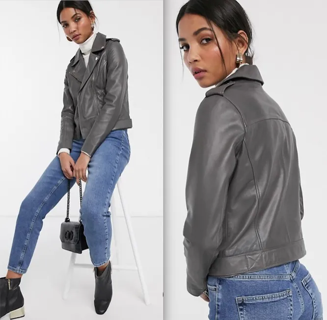 Кожаная куртка с косой застежкой из гардероба рокеров давно перекочевала в шкаф модниц. Почему? Возможно, потому что в ней девушка выглядит хрупко, но при этом современно. Косуха идет абсолютно всем, не важно какой у вас типаж или размер, нужно просто подобрать идеальную модель. Ищите свой вариант среди темных оттенков: она может быть черной, серой, темно-зеленой или коричневой. Желательно из натуральной или качественной эко-кожи, ведь носить ее вы будете много лет. Носите не только с брюками, но и с щелковым платьем.