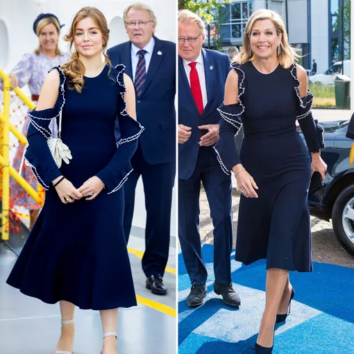 В начале сентября принцесса Нидерландов Алексия доказала, что унаследовала чувство стиля своей матери, королевы Максимы, – известной модницы. 18-летняя особа королевской крови, которая является второй в очереди на голландский престол после своей сестры принцессы Катарины-Амалии, заимствовала из гардероба Максимы элегантное темно-синее платье миди. Наряд от Oscar de la Renta с эффектными вырезами на рукавах дополняет ряд кипельно-белых оборок. , Королеву Нидерландов мы видели в нём в июне 2019 года на Глобальном саммите по предпринимательству в Гааге. Это тот случай, когда принять решение сложно. Но всё же с перевесом в полбалла побеждает Алексия. Мы и сами не можем объяснить почему – возможно, всё дело в причёске и аксессуарах, с которыми платье «заиграло» по-другому.