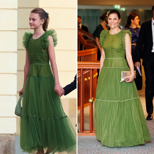 Некоторое время назад принцесса Швеции Эстель вышла в свет в платье из зелёного тюля, от вида которого у многих брови поползли вверх: «Мы где-то точно это видели!» Именно так: 11-летняя девочка примерила первый «взрослый» наряд из гардероба матери – наследной принцессы Виктории, которая надевала платье на торжественный ужин в прошлом году.